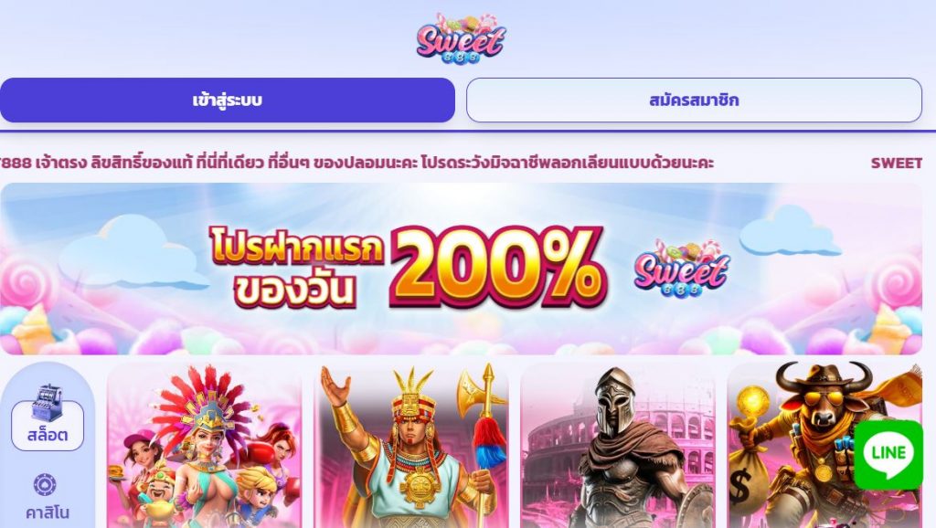 ทางเข้า sweet888 เว็บตรง อัพเดทล่าสุด เสถียร เข้าเล่นง่าย รองรับทุกระบบ เปิดประสบการณ์ใหม่ในการเข้าร่วมสนุกอย่างลื่นไหลทันใจวัยรุ่นกับ ทางเข้า sweet888 คาสิโนออนไลน์เว็บตรงอันดับ 1